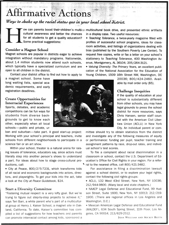 "Affirmative Actions," Sidebar to the Changing Face of Integration Special Report, Parenting, September 1994